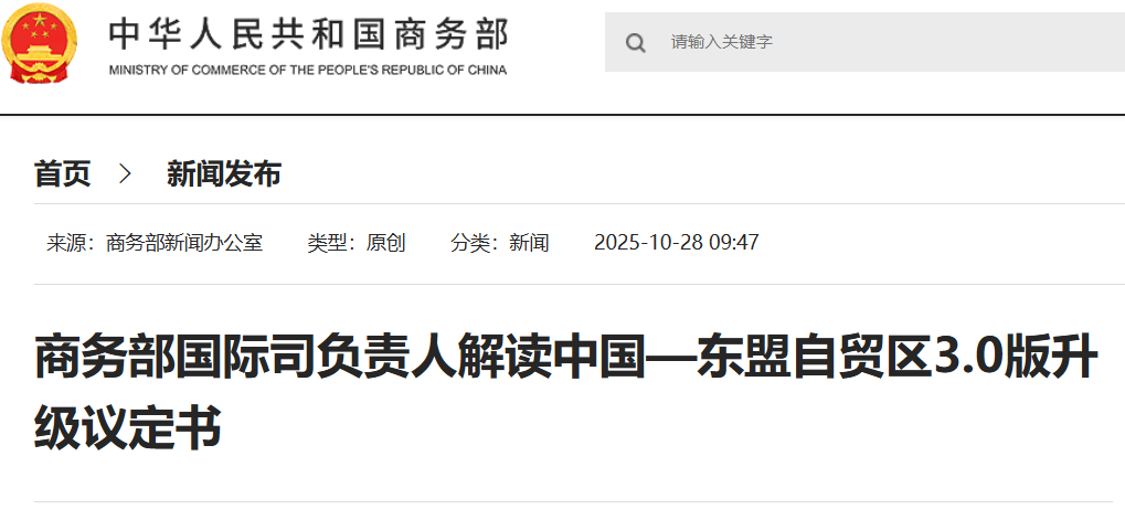 - 10-292025 商務(wù)部:中國(guó)與東盟首次對(duì)綠色經(jīng)濟(jì)、新能源、清潔能源、可持續(xù)金融、綠色技能等作出明確定義